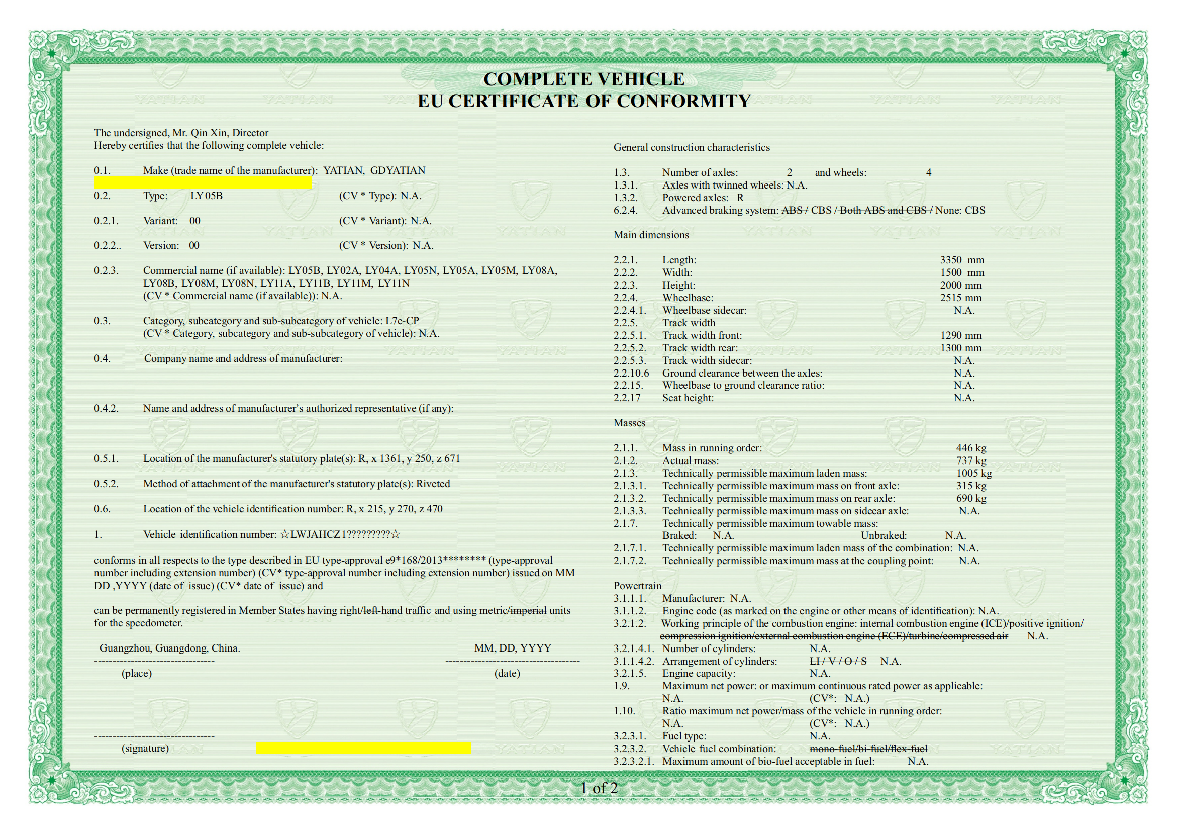 نطاق شهادة EEC الخاصة بشركة Yatian